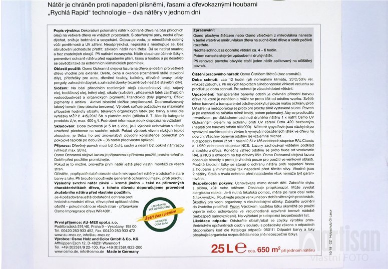 - Povrch ošetřený olejem je odolný povětrnostním vlivům a chrání proti UV záření.
