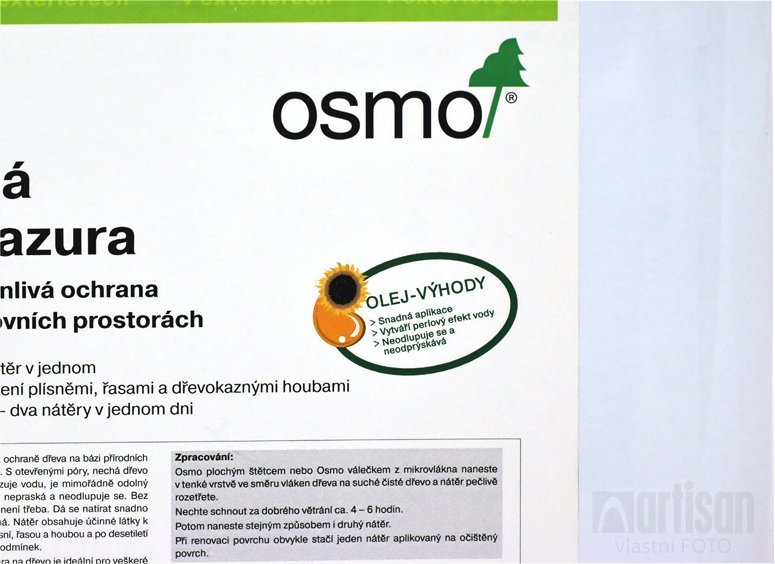 - Osmo ochranná lazura odpuzuje vodu, nechává dřevo dýchat, snižuje bobtnání a sesychání.