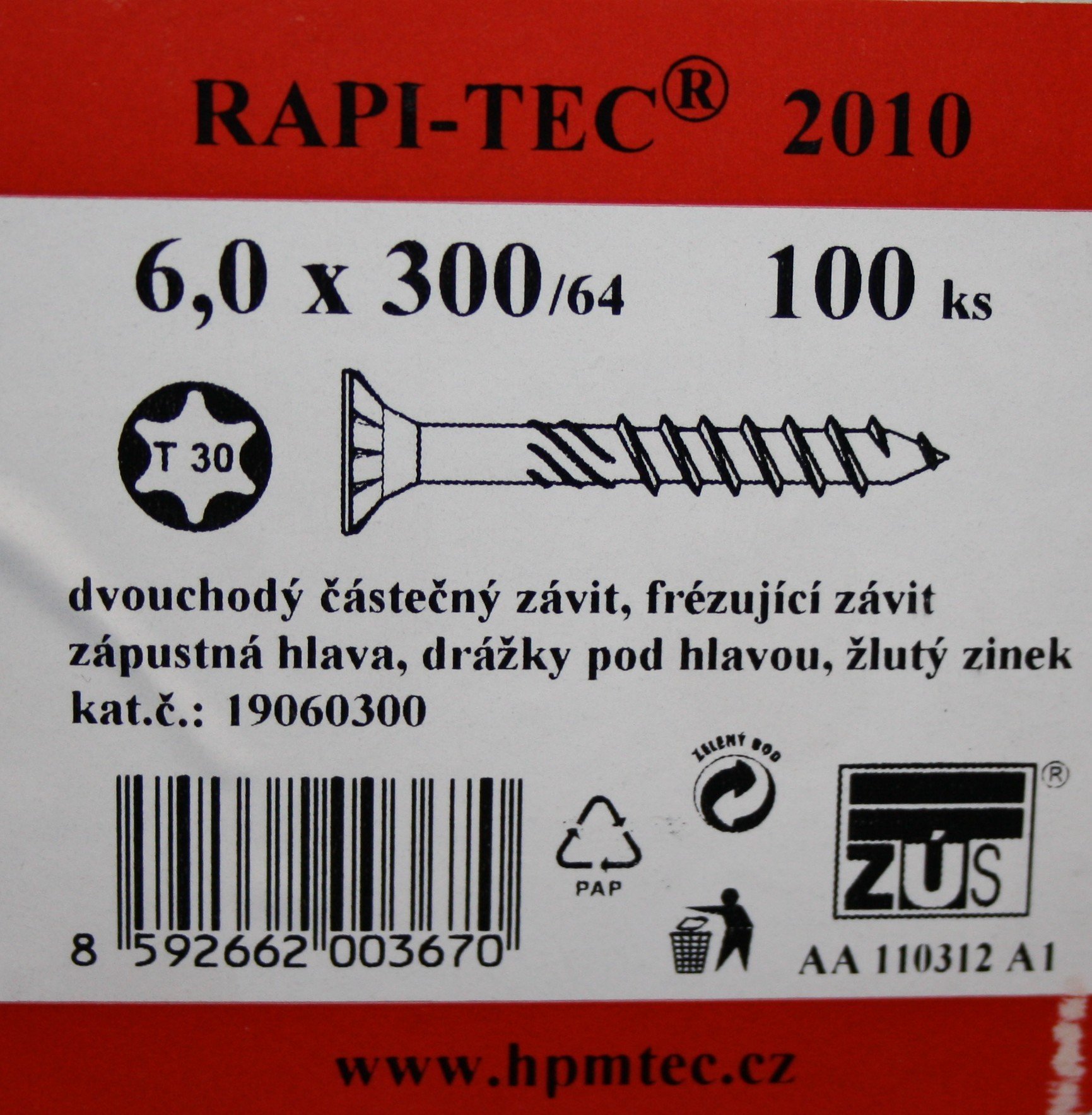 - vrtací vruty Rapi-Tec 2010 jsou určeny pro veškeré konstrukční řezivo, OSB desky, DURÉLIS desky, překližky, atd.