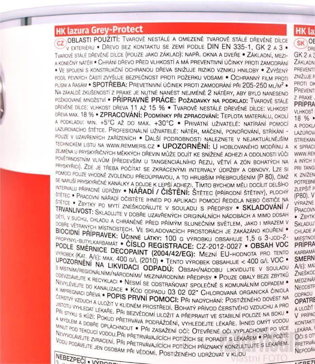 - Tato lazura byla v roce 2021 výrobcem přejmenována. Její původní název byl REMMERS HK-Lasur Grey-Protect - ochranná lazura na dřevo v exteriéru.