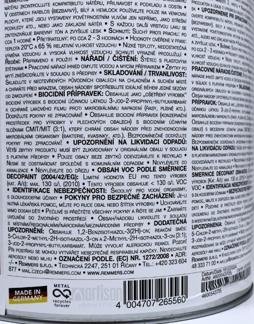 - Skladujte plechovku důkladně uzavřenou v originálním obalu.