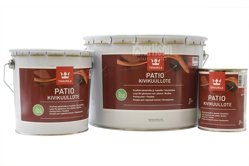 TIKKURILA Patio Kivikuullote vodou ředitelné mořidlo určené do exteriéru na průmyslově obarvené i nebarvené dlažební kostky a desky, betonové zahradní kameny a zámkovou dlažbu. Snadno se aplikuje a skvěle oživuje barevný vzhled dlažby.