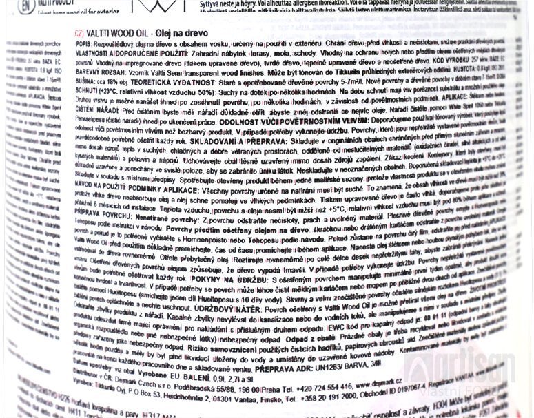 - Vosk, který olej Valtti wood oil obsahuje, skvěle chrání dřevo před vlhkostí a nečistotami.