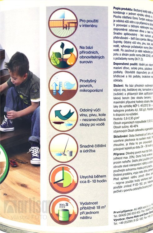- Olej na dřevěnou podlahu a nábytek - nepraská, neodprýskává se a neodlupuje se.